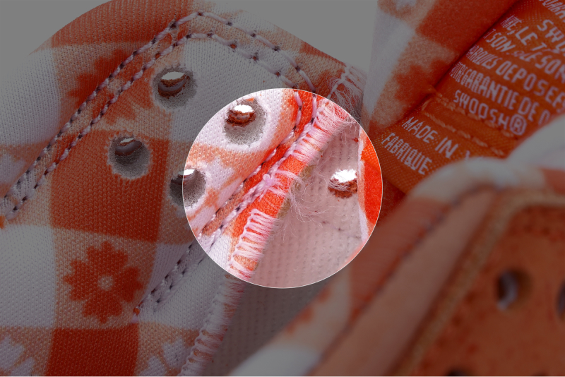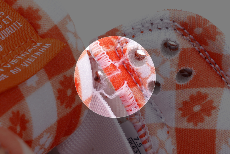 해당 모델 특성상 재봉 및 아일렛 펀칭 등의 제조공정상 발생되는 올 풀림 현상 다수 발견