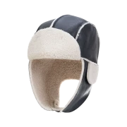 LATHBK Allincomplete Leather Aviater Trooper Hat Black