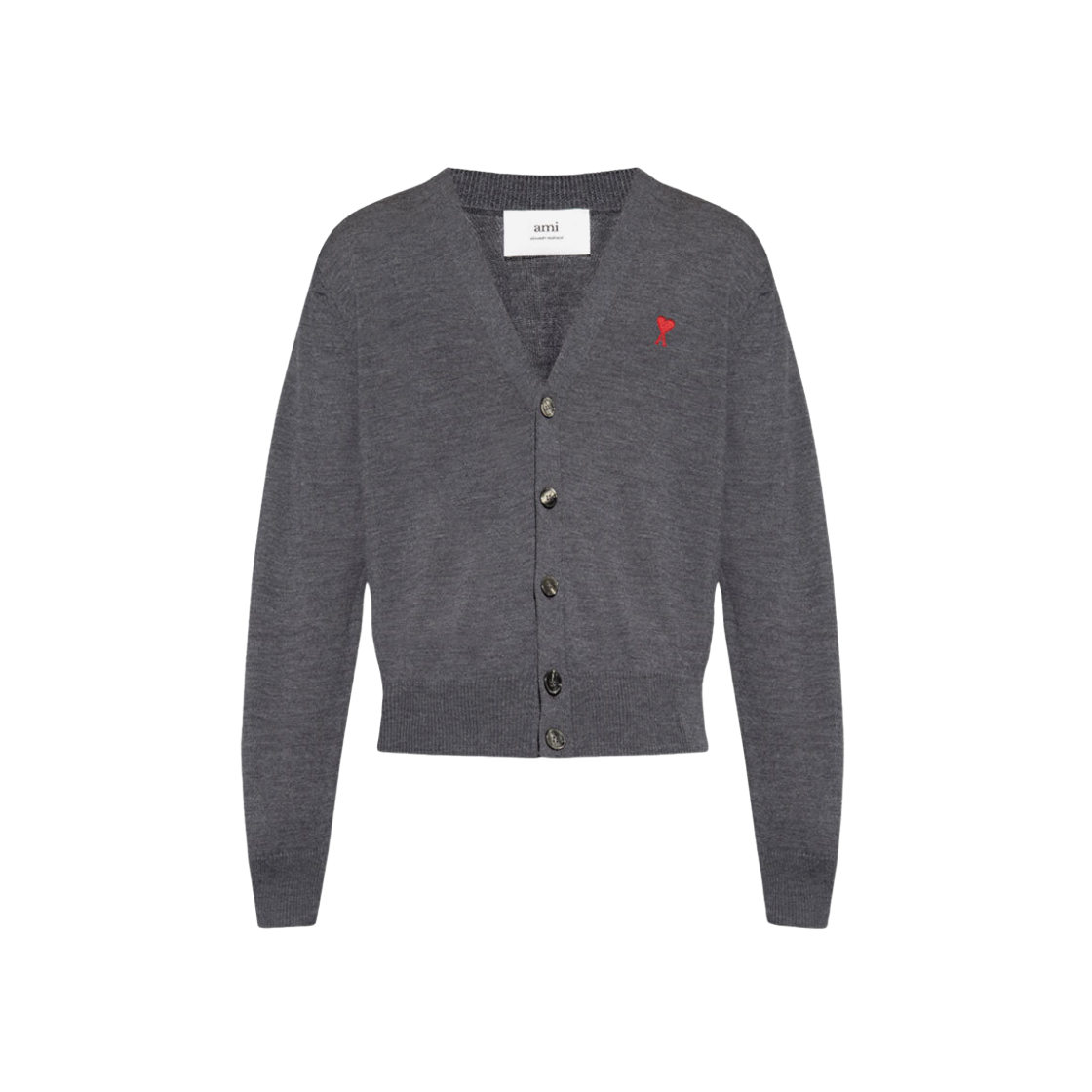 아미 빅 하트 로고 가디건 헤더 그레이 레드