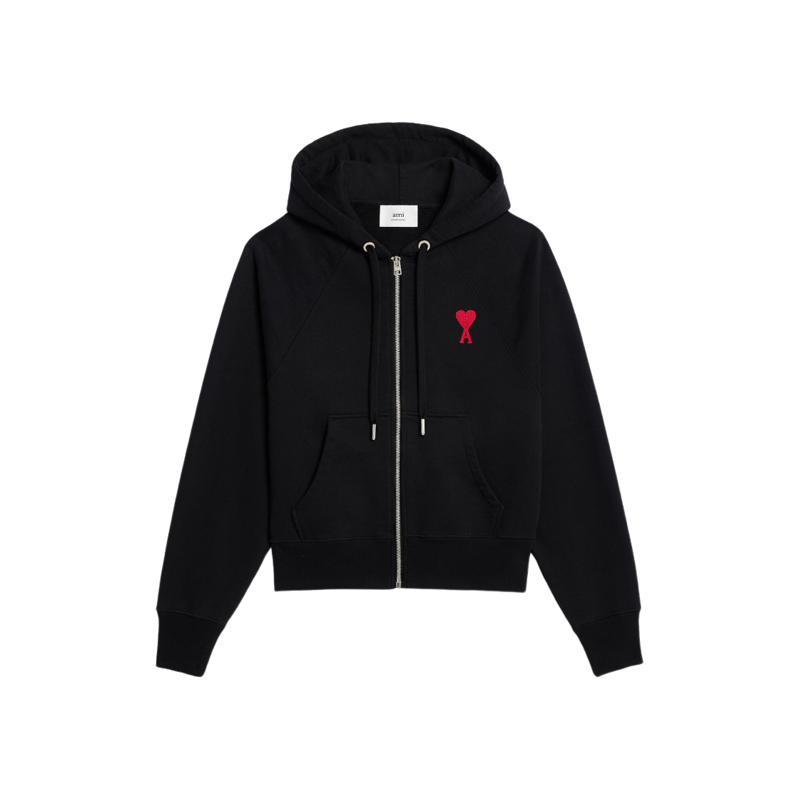 AMI de Coeur Loopback Oragnic Cotton Fleece Zipped Hoodie Black