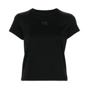 4CC3241521001 (W) Alexander Wang Puff Logo Shrunken T-Shirt in Cotton Jersey Black