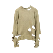 안셀름 데미지 울 크루 롱슬리브 티셔츠 아이보리
