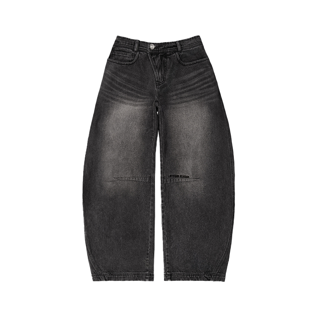 AA Curved Line Washing Wide Denim Pants Black