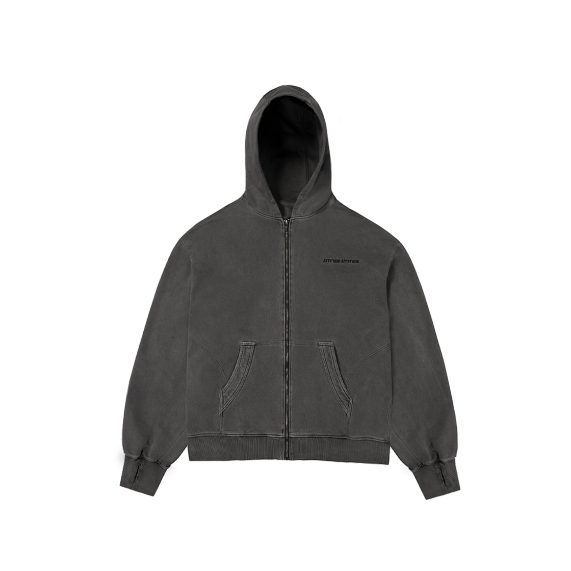 애티튜드 애티튜드 커브드 가먼트다잉 스웻 후드 집업 블랙