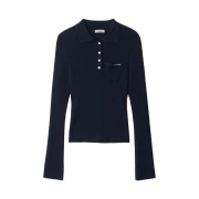 (W) Aviemuah Ribbed Knit Polo Shirt Navy