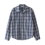 블루 선플라워 선 러브 체크 반팔 셔츠