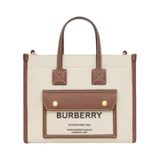 8044138 Burberry Small Two-Tone Canvas and Leather Freya Tote Bag Natural Tan