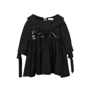 캐롤라인 후 우먼 튤 비딩 시퀸 자수 셔츠 블랙 - 24FW