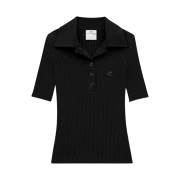 VESMPO029FI00019999 (W) Courreges Iconic Rib Knit Polo Shirt Black