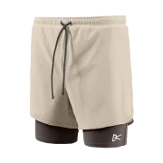 DV0028-A-KHAK District Vision Layered Pocketed Trail Shorts Khaki Slate Brown