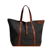더블알엘 자수 데님 워크 셔츠 워시트 블랙