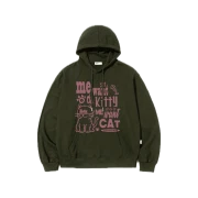 E252HD048KH Escapefrom Want Kitty Print Hoodie Khaki