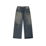 E252FDS001 Escapefrom Flower Washed Denim Printed Sweat Pants Black