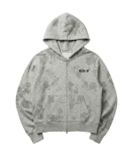 이스케이프프롬 톤온톤 도트 플라워 풀프린트 스탠다드핏 후드집업 멜란지 그레이