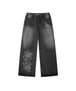 이스케이프프롬 장미 프린트 밴딩 워싱 데님 팬츠 흑청
