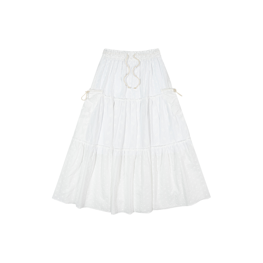 프리터 아일렛 러플 맥시 스커트 화이트