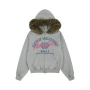 Soulpusssycat X Grailz Parody Fur Zip Hoodie Gray