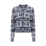 A7180-252 Ganni Large Easy Shopper Contrasted Logo Pocket Tote Bag Phantom