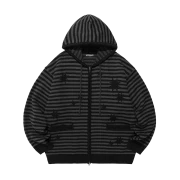 이스트쿤스트 스타 스트라이프 래글런 니트 집업 차콜