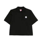 Kenzo Happy Tiger Embroidered Slim Polo Shirt Black