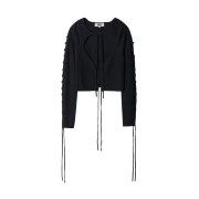 멜로우 레이스업 스트링 가디건 블랙