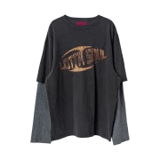 멜로우 그래픽 빈티지 워싱 스웻 셔츠 퍼플