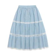 WW84101 (W) Madhappy Friends With Animals Paneled Skirt Blue Check
