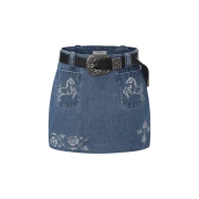 KW6BSKSGO15BL Markgong Women Blue Cross Stitch Embroidered Denim Skirt With Detachable Belt Blue - 26SS