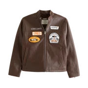 McLaren Racing x Abercrombie & Fitch Vegan Leather Racer Jacket Brown Pattern