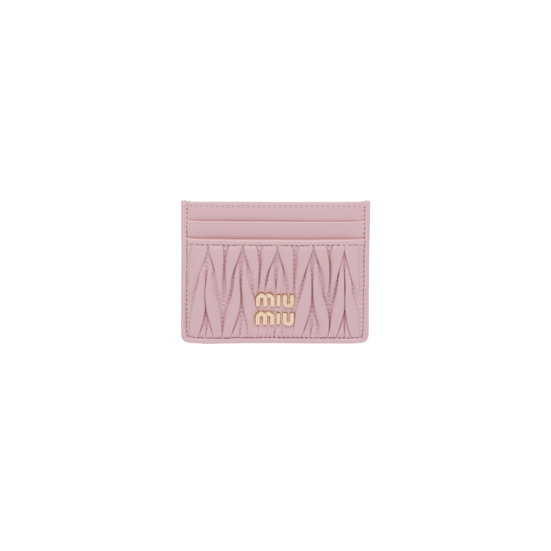 5MC076-2FPP-F0236 Miu Miu Matelasse Nappa Leather Card Holder Powder Pink