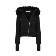 NK5FLS04 Notknowing Grunge Fur Hood Cardigan Black