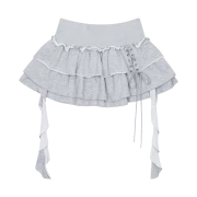 NK5FSK02 Notknowing Tiered Ruffle Sweat Skirt Melange Grey