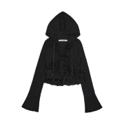 낫노잉 그런지 퍼 후드 가디건 블랙
