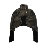 (W) No/Faith Studios Cropped Denim Ripped Jacket Black