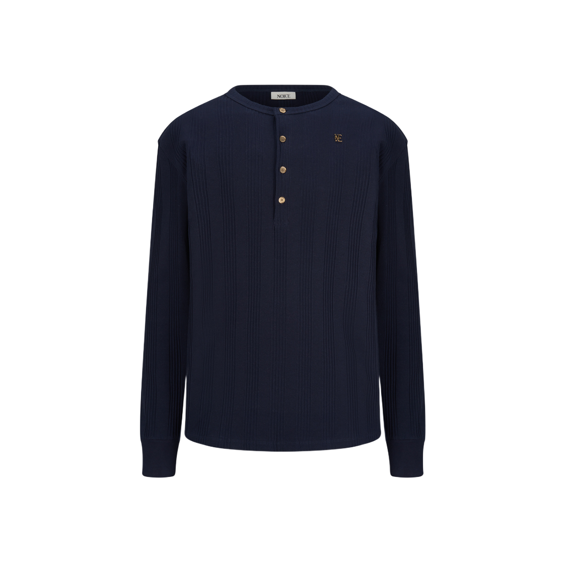 노이스 코튼 립 롱슬리브 헨리넥 블랙