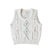 Rubati Vintage Flower Hand Stitched Knit Vest Ivory