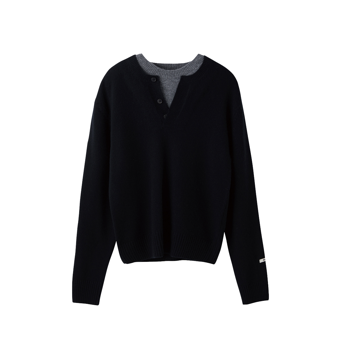 렉토 콘트라스트 레이어드 V넥 니트 탑 토프 그레이
