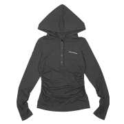 러프넥 드레이프 후드 롱 슬리브 탑 그레이