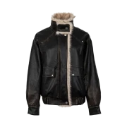 러프넥 워싱 레더 무스탕 자켓