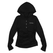 러프넥 헨리 후드 롱 슬리브 탑 블랙