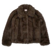 러프넥 모카 페이크 퍼 자켓