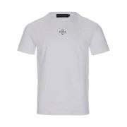 써저리 언발런스 메탈 클로버 로고 슬림핏 티셔츠 화이트