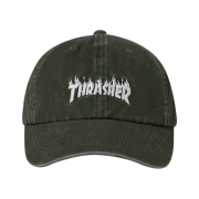 THRASHER Flame Overdyed Logo Ball Cap Dark Pine