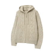 TNGT Over-fit Cable Hood Zip-up Knit Melange Oatmeal