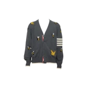Thom Browne MKC451A Bird & Bee Grey Merino Wool Cardigan