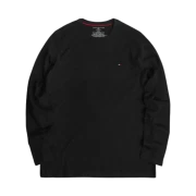 09T3118001 Tommy Hilfiger Thick Long Sleeve Relaxed Fit Flag Crew Neck T-Shirt Black