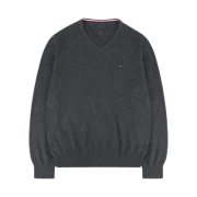 타미 힐피거 시그니처 솔리드 브이넥 스웨터 그레이 헤더