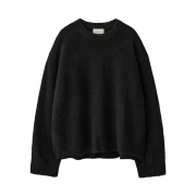 우마뭉 울 알파카 버튼 슬리브 크루넥 풀오버 블랙