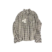 언더마이카 무.74 안티 Fxxking 로고 플레이 베이직 롱슬리브 플란넬 셔츠 베이지 그린