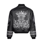 JUJUTSU KAISEN Undermycar Ryomen Sukuna Embroidered Leather Bomber Black